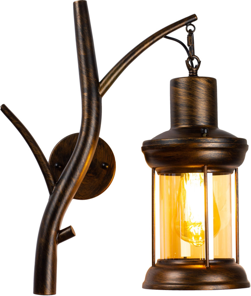 Каркас настенного светильника реализован из прочного , цвет арматуры - медный, цвет плафона - янтарный, что придает этому светильнику изысканности.