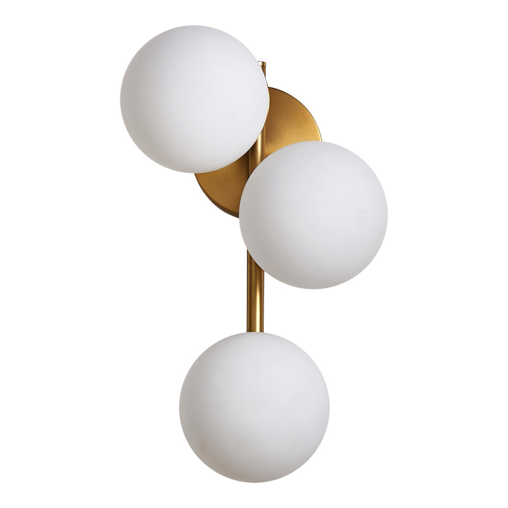 Корпус настенного светильника выполнен из прочного металл, цвет каркаса - латунный, цвет плафона - белый, что придает этому светильнику изысканности.