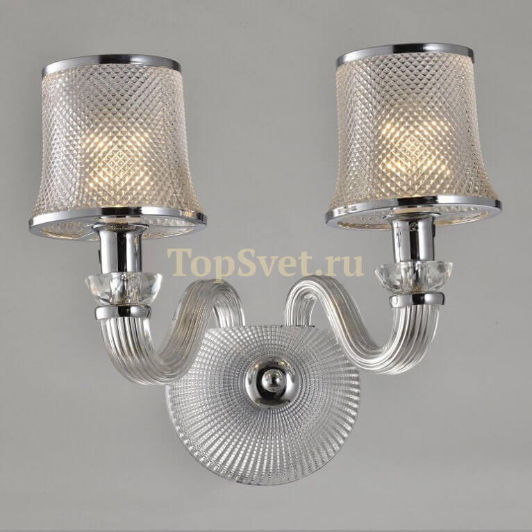 Корпус бра создан из надёжного металл, цвет арматуры - никель/Хром, цвет плафона - прозрачный, что придает этому светильнику благородности.
