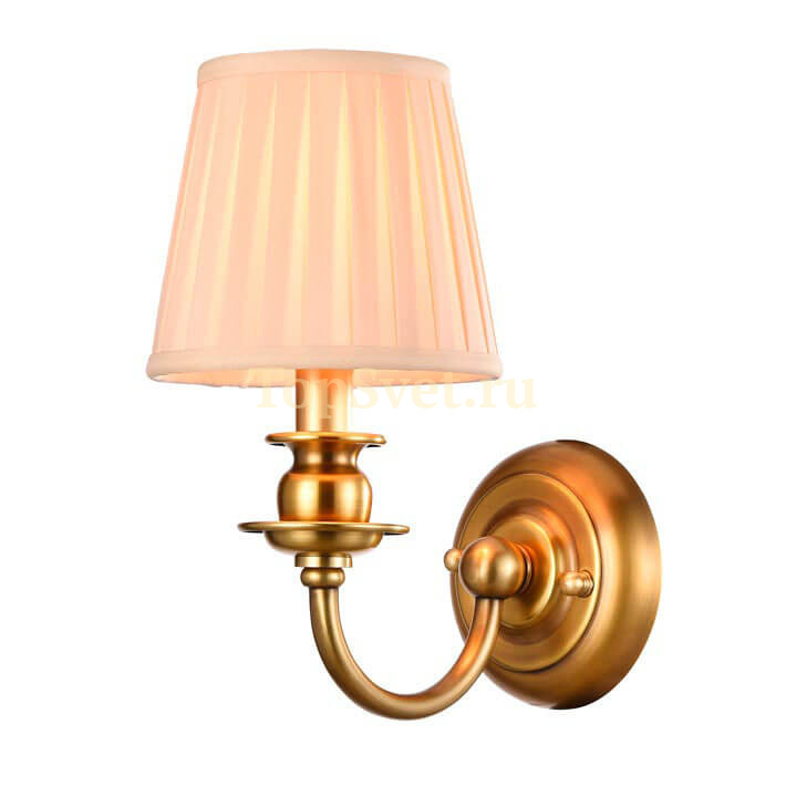Корпус бра реализован из качественного металл, цвет каркаса - латунь, цвет плафона - бежевый, что придает этому светильнику благородности.