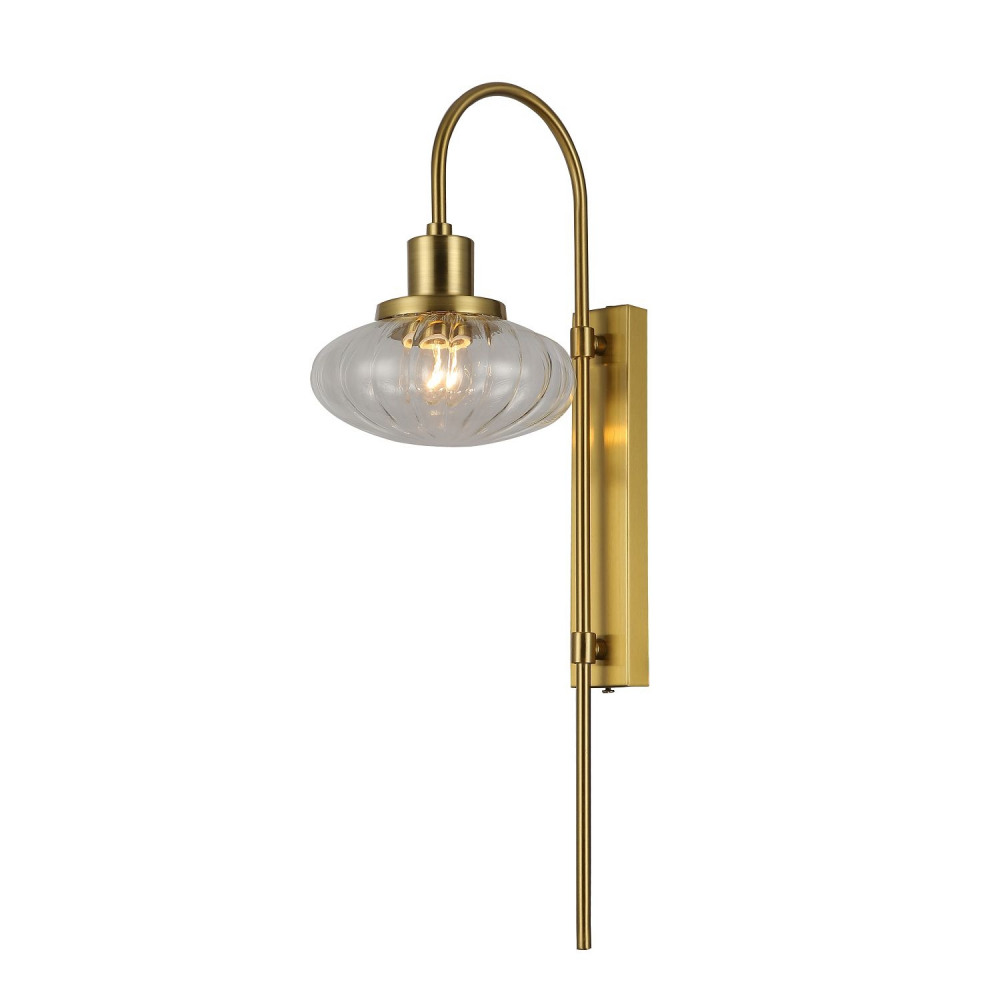 Каркас настенного светильника реализован из качественного металл, цвет арматуры - золото, цвет плафона - белый, что придает этому светильнику изысканности.
