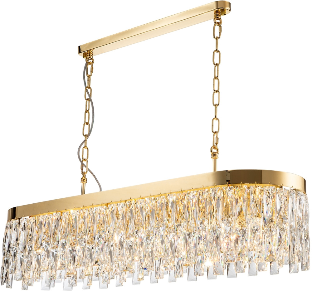 Корпус подвесной люстры создан из надежного металла, а золотой цвет добавит вашему интерьеру теплоты. Плафон выполнен в прозрачном цвете, что добавляет модели легкости, элегантности и завершенность образа.