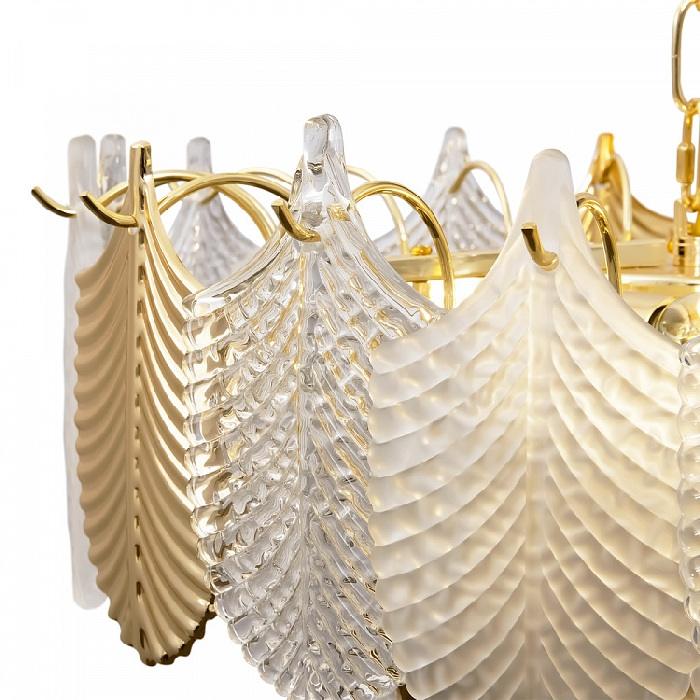 Каркас подвесной люстры реализован из высококачественного металла, а золотой цвет добавит вашему интерьеру теплоты. Плафон выполнен в прозрачном цвете, что добавляет модели легкости, элегантности и завершенность образа.