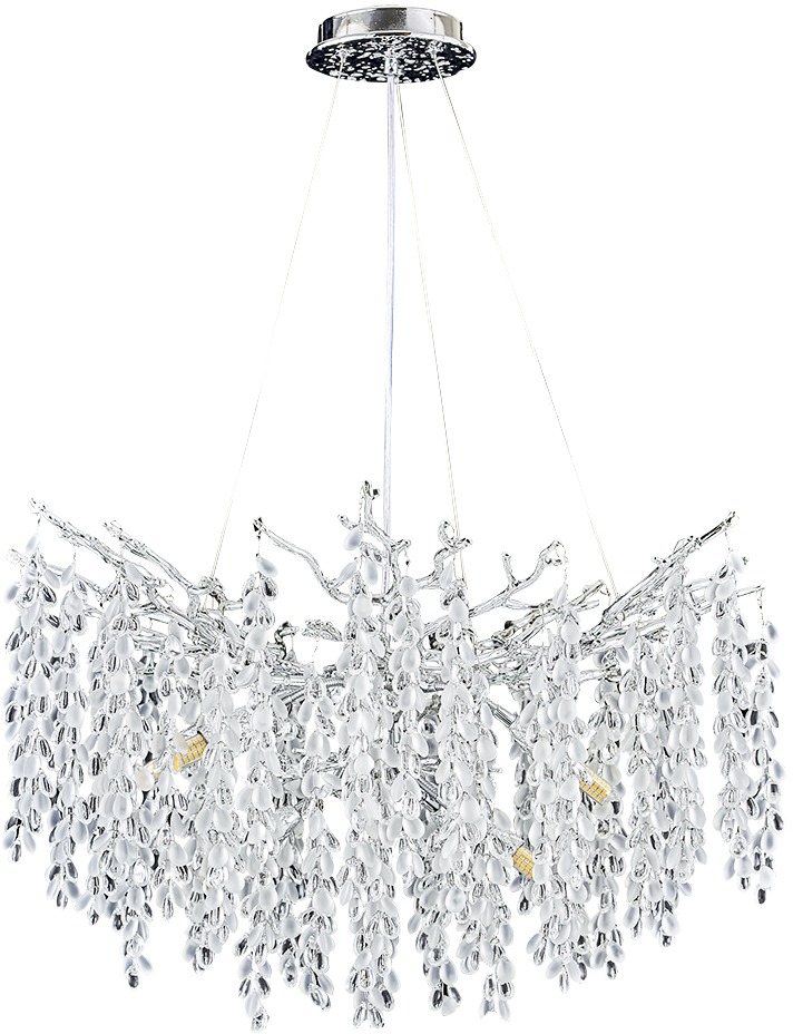 Для создания необходимого освещения в светильнике предусмотрены лампочки в количестве 13 шт. с цоколем G9 и общей мощностью 520 Вт., что обеспечивает приятное освещение помещения площадью до кв.м.