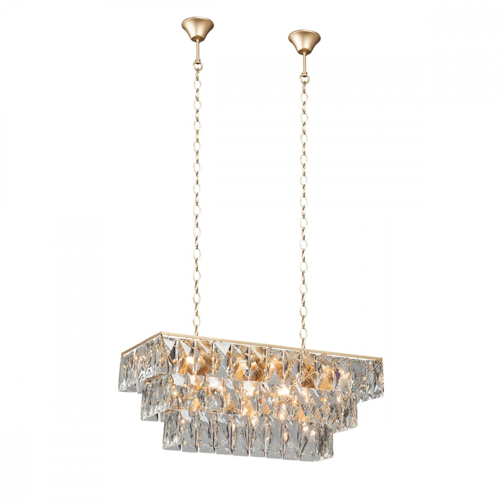 Корпус подвесной люстры выполнен из надежного металла, а золотой цвет придаст вашему интерьеру глубины. Плафон выполнен в прозрачном цвете, что добавляет модели легкости, элегантности и завершенность образа.