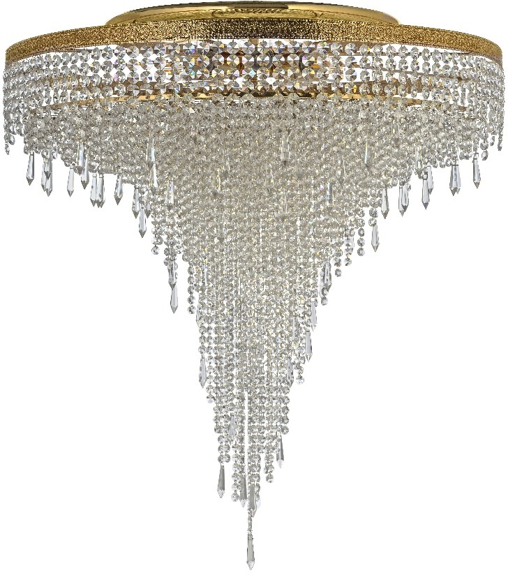 Эта каскадная модель из коллекции Santa Gold создана для парадных гостиных и зон второго света: высокий подвес (до 2000 мм) и круг диаметром 600 мм формируют эффектный световой акцент, который не теряется даже в большом помещении. Прозрачный хрусталь на золотистой арматуре преломляет лучи и даёт ровное, плотное освещение — именно то, что нужно для торжественной атмосферы и повседневного уюта. В языке интерьеров это сочетание читается как классика с деликатными арт-деко мотивами, без излишней вычурности.