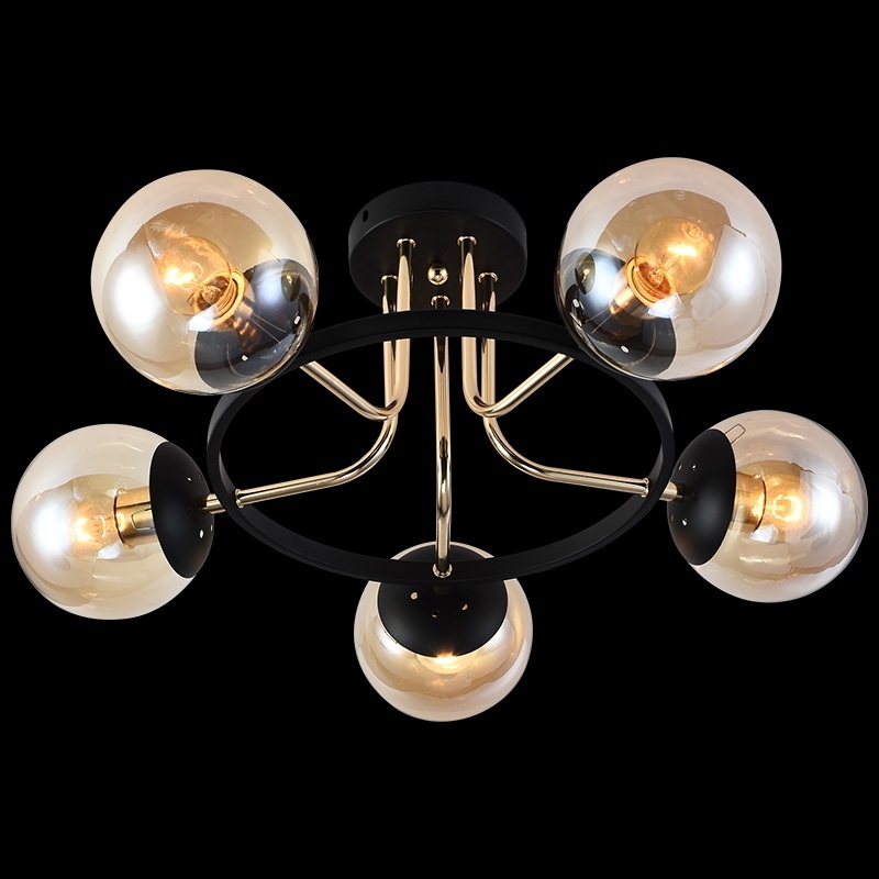 Корпус потолочной люстры создан из надежного металла, что добавляет ей прочности и долговечности. Плафон в янтарном цвете придаёт модели лёгкости, изысканности и завершенности, благодаря чему люстра станет настоящим украшением вашего интерьера.