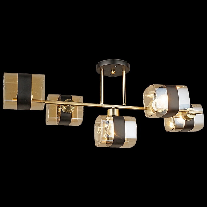 Корпус потолочной люстры создан из надежного металла, что добавляет ей прочности и долговечности. Плафон в чёрном, янтарном цвете придаёт модели лёгкости, элегантности и завершенности, благодаря чему люстра станет настоящим украшением вашего интерьера.