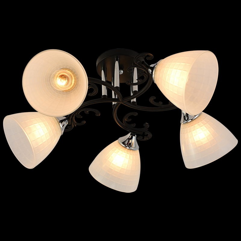 Для создания яркого освещения в светильнике предусмотрены лампочки в количестве 5 шт. с цоколем E27 и общей мощностью 300 Вт., благодаря чему обеспечивается мягкое освещение для помещений площадью до 40 кв.м.