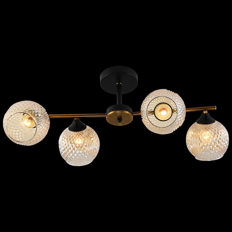 Корпус потолочной люстры выполнен из надежного металла, что добавляет ей прочности и долговечности. Плафон в янтарном цвете придаёт модели лёгкости, элегантности и завершенности, благодаря чему люстра станет настоящим украшением вашего интерьера.