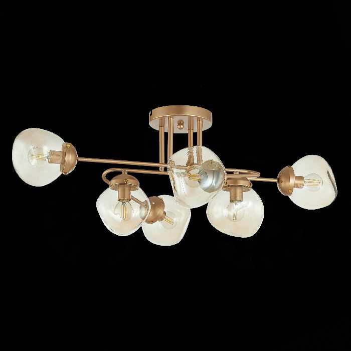 Каркас потолочной люстры сделан из высококачественного металла, что добавляет ей прочности и долговечности. Плафон в янтарном цвете придаёт модели лёгкости, элегантности и завершенности, благодаря чему люстра станет настоящим украшением вашего интерьера.