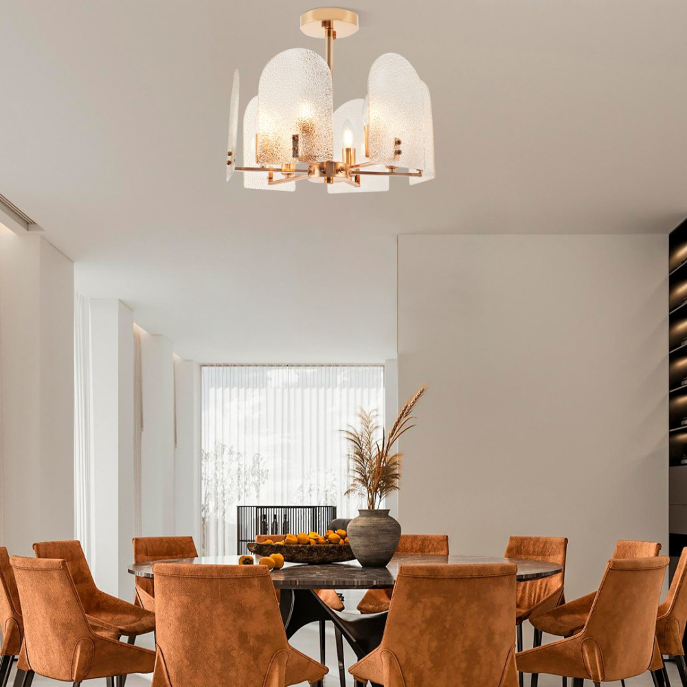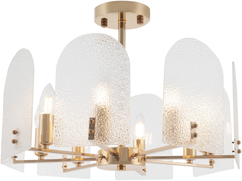 Корпус потолочной люстры изготовлен из высококачественного металла, что добавляет ей прочности и долговечности. Плафон в прозрачном цвете придаёт модели лёгкости, изысканности и завершенности, благодаря чему люстра станет настоящим украшением вашего интерьера.