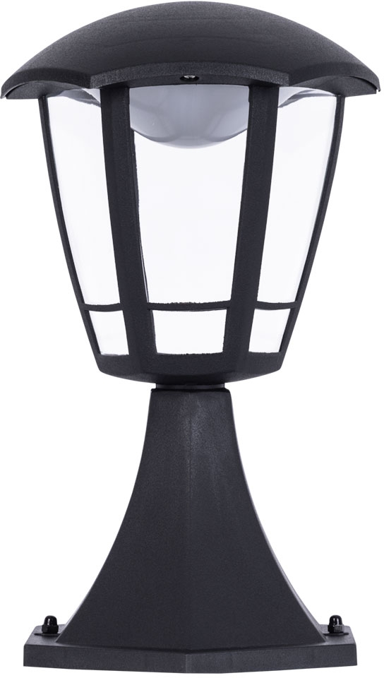 Каркас уличного светильника создан из качественного пластика, цвет корпуса - чёрный, цвет плафона - прозрачный, что придает этому светильнику благородности.