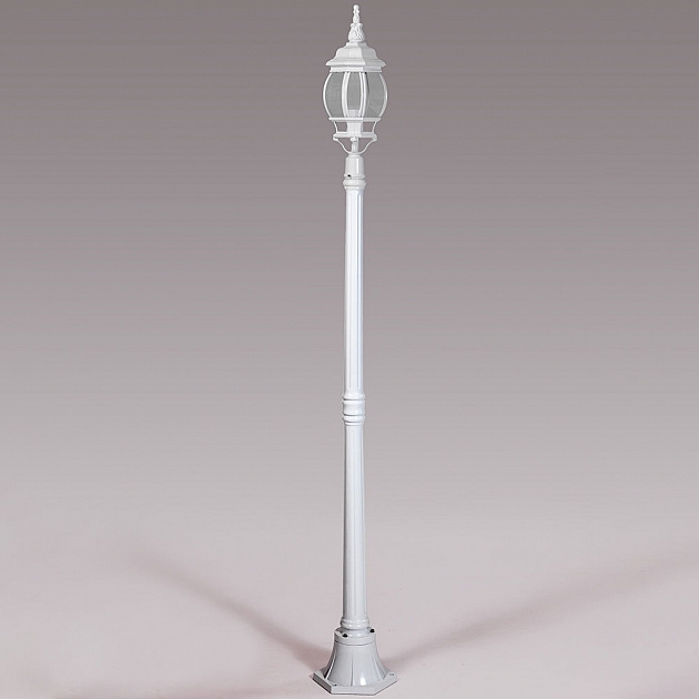 Корпус уличного светильника выполнен из качественного металла, цвет корпуса - белый, цвет плафона - прозрачный, что придает этому светильнику благородности.