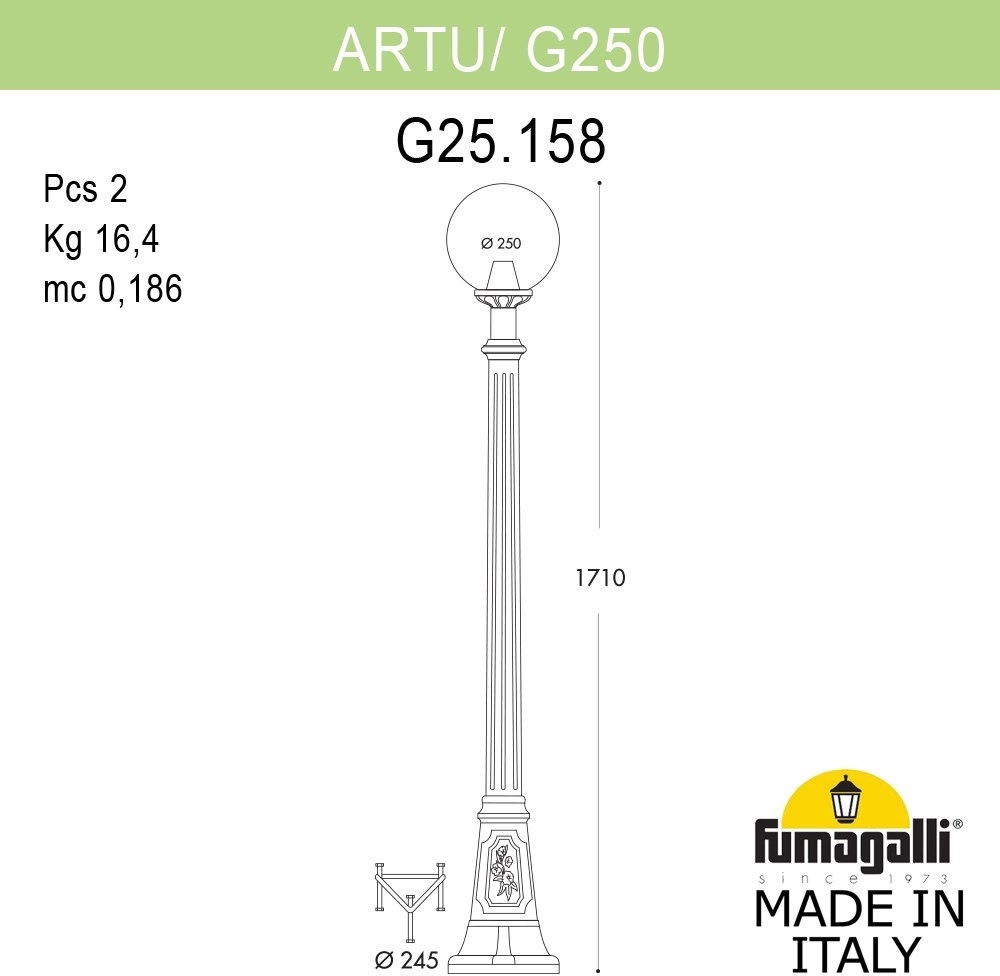 Наземный фонарь GLOBE 250 G25.156.S10.VXF1R Fumagalli и другие товары на нашем сайте можно купить в рассрочку на 6 или 9 месяцев без переплаты, а также оформить кредит от Сбербанка на 36 месяцев!