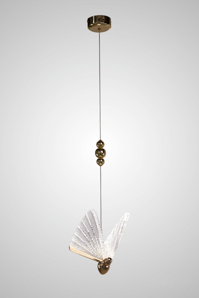 Каркас данной модели исполнен из надёжного алюминия, а его золотой цвет придаст вашему интерьеру гармоничности и теплоты. Плафон выполнен в прозрачном цвете, что придает модели легкости и изысканности.