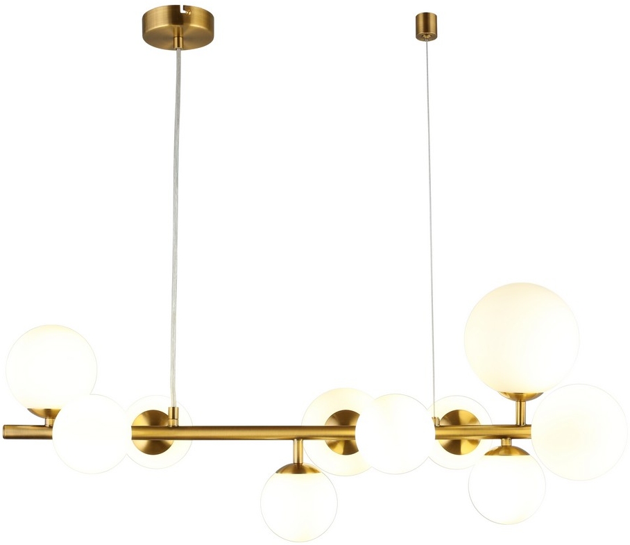 Размеры этого светильника – ширина мм., высота 600 мм. Он идеально впишется для комнаты площадью до 10 квадратных метров. Для создания необходимого освещения здесь использовано 10 ламп с цоколем G9 и общей мощностью 50 Вт.