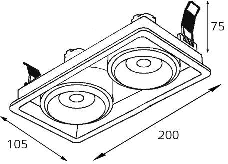 Размеры этого светильника – ширина мм., высота 75 мм. Он идеально подойдёт для комнаты площадью до 9 кв.метров. Для создания необходимого освещения здесь использовано 2 ламп с цоколем GU10 и общей мощностью 18 Вт.
