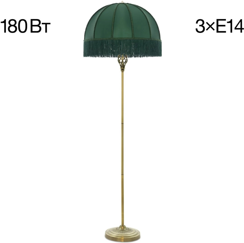 Размеры этого торшера – ширина 510 мм., высота 1640 мм. Он идеально впишется для комнаты площадью до 5 кв.метров. Для создания подходящего освещения здесь использовано 3 ламп с цоколем E14 и общей мощностью 180 Вт.