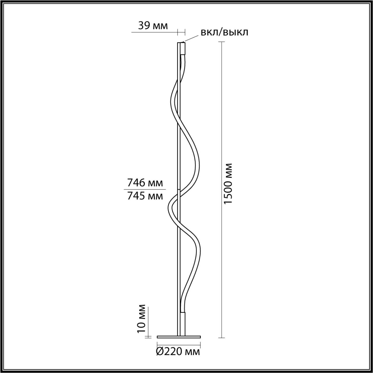 Размеры этого торшера – ширина 39 мм., высота 1500 мм. Он идеально впишется для комнаты площадью до 5 кв.метров. Для создания приятного освещения здесь использовано 1 ламп с цоколем LED и общей мощностью 15 Вт.